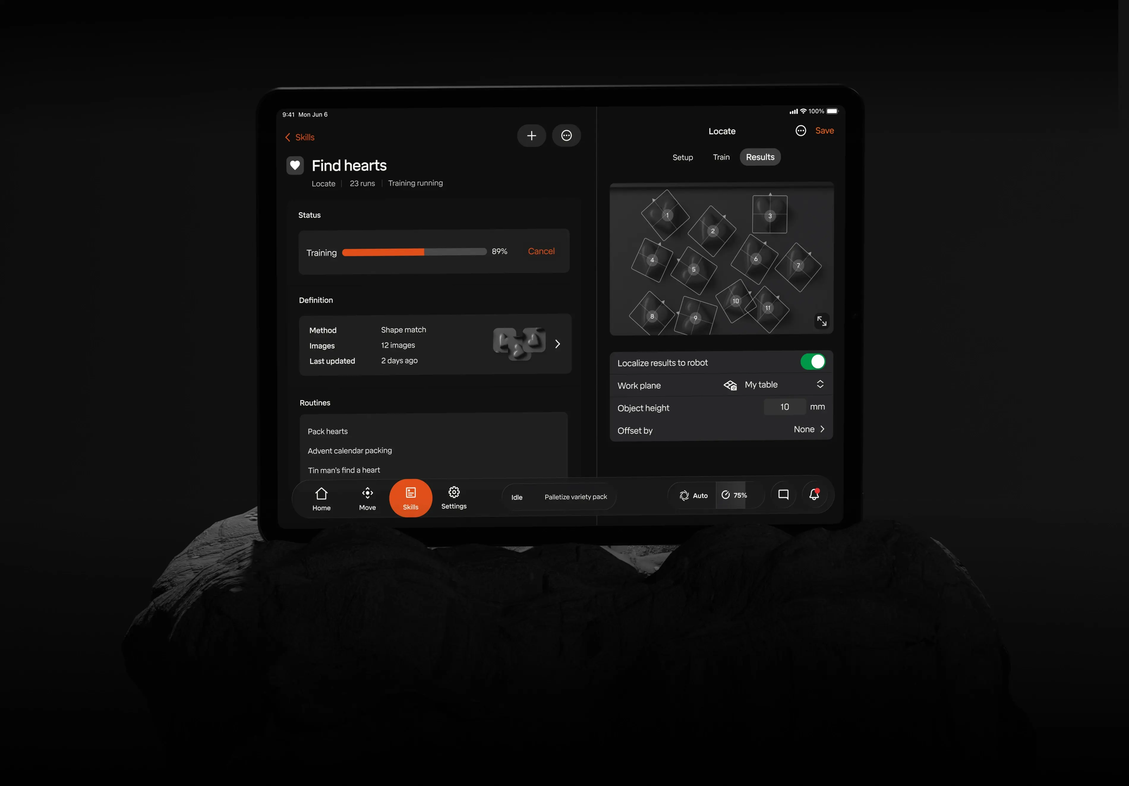 Demonstrate a task to the robot, and then it will perform the task autonomously using a learning model. The robot will even adapt to variations in the environment and correct on its own.