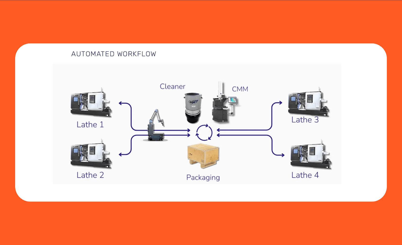 Downstream of machining, tending robots commonly palletize finished parts or route them to inspection and packaging. Modular palletizing cells are widely used to standardize this step across plants, letting manufacturers scale units over time while keeping cycle times predictable.