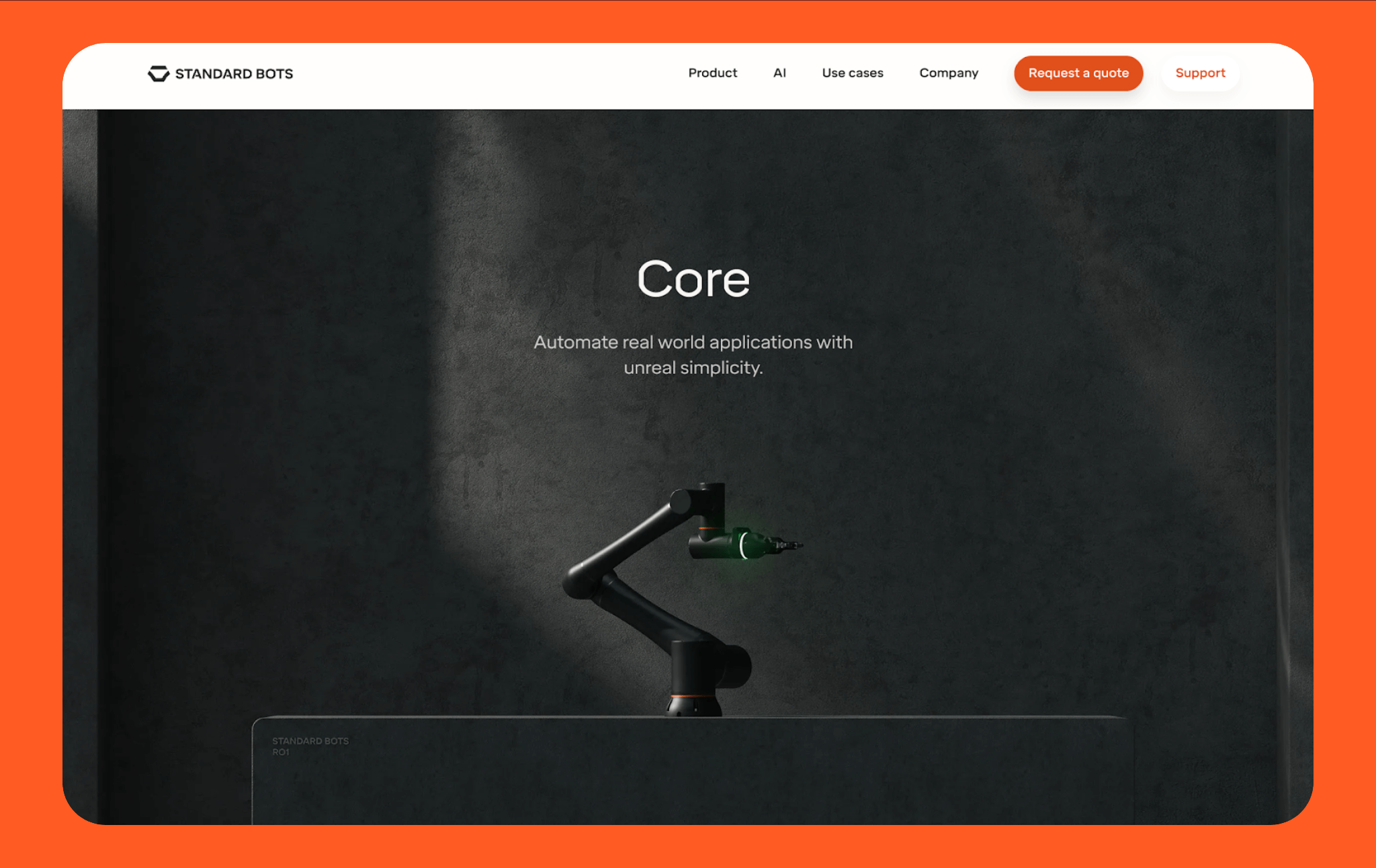 - AI-driven simplicity: Equipped with advanced demonstration learning and real-time adaptation through Standard Bots' vertically integrated AI platform, Core and Thor integrate smoothly with conveyors, sensors, and palletizing systems for advanced automation.