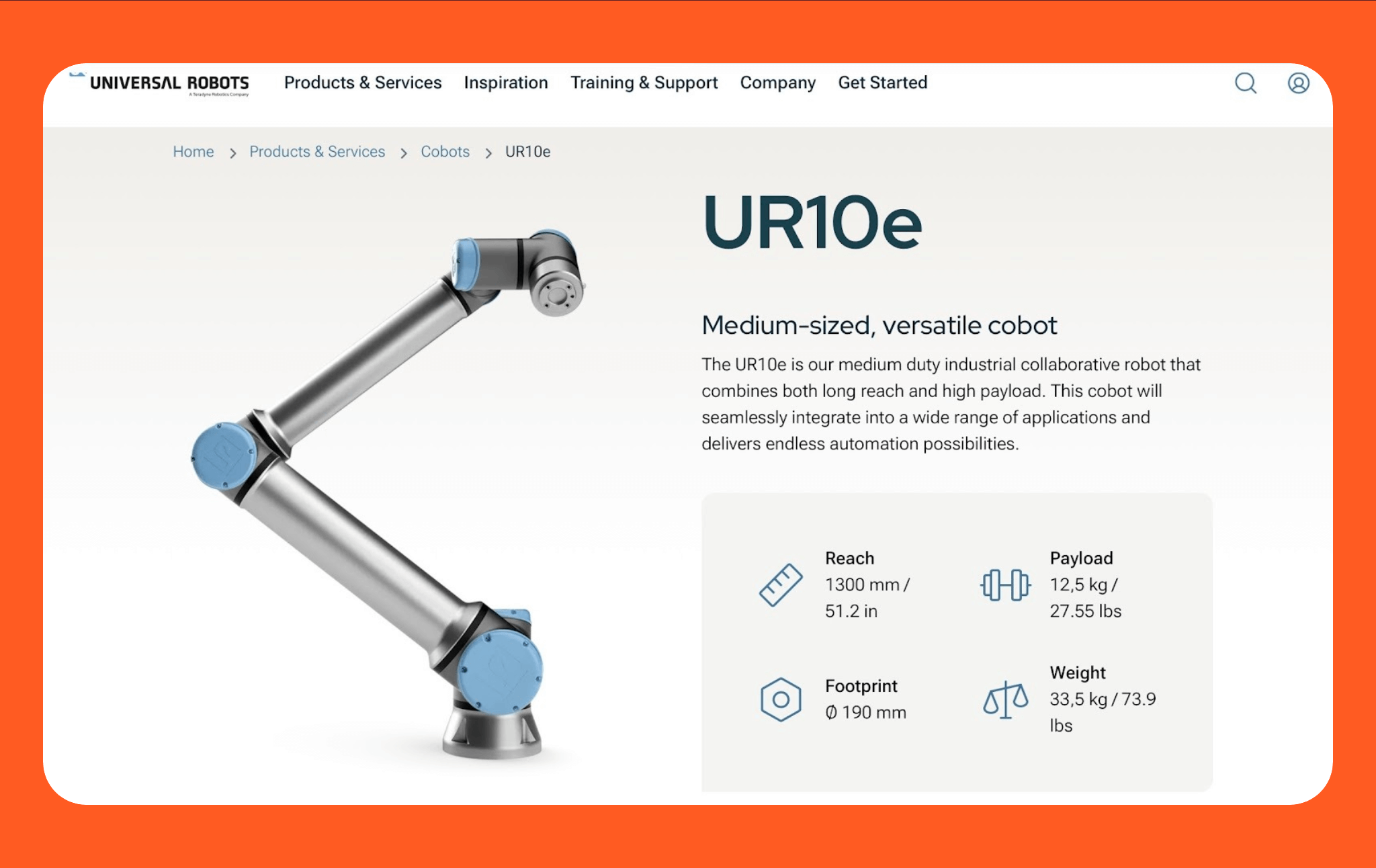 Its lightweight and quick redeployment make it ideal for factories that need automation without permanent installations. The UR10e can pair with plug-and-play grippers, vacuum tools, and vision kits, giving it strong adaptability across industries such as logistics, consumer goods, and pharmaceuticals.