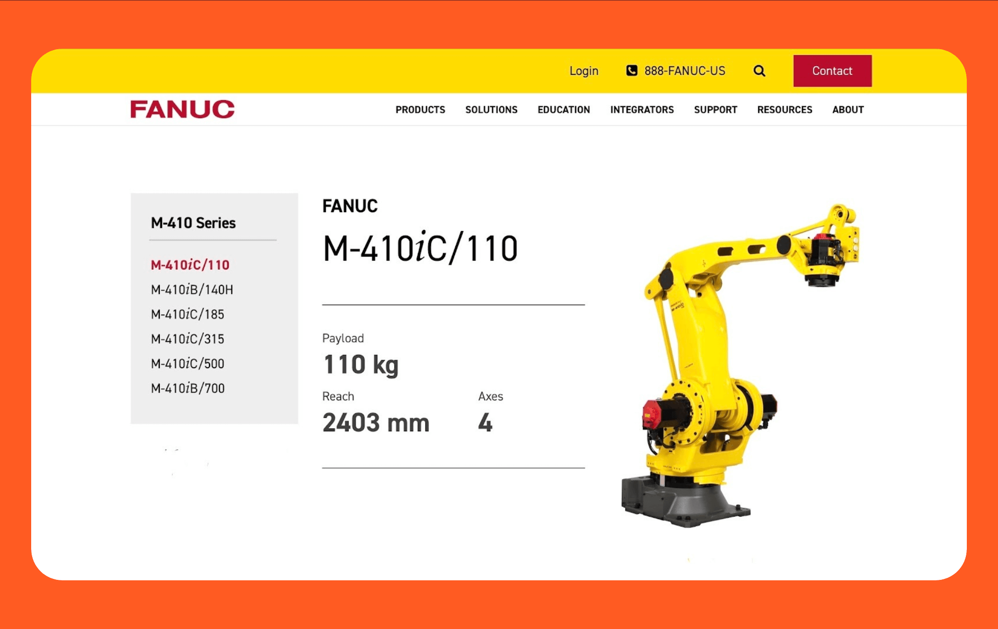 3. FANUC M-410iC/110: Best for high-speed pallet stacking