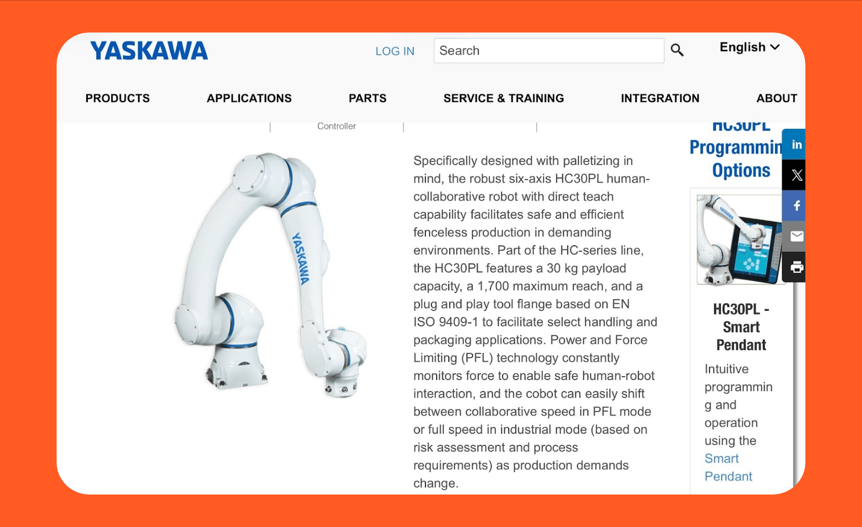 5. Yaskawa HC30PL: Best for industrial-grade collaborative stacking