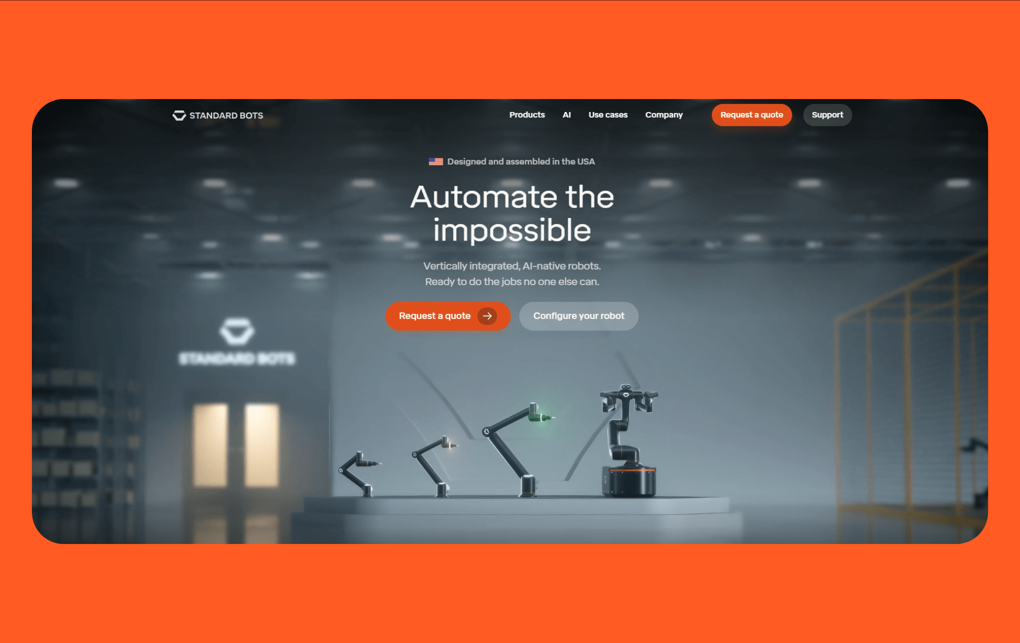 - AI-driven simplicity: Equipped with advanced demonstration learning and real-time adaptation through Standard Bots' vertically integrated AI platform, Core and Thor integrate smoothly with conveyors and palletizing software for fully automated loading.