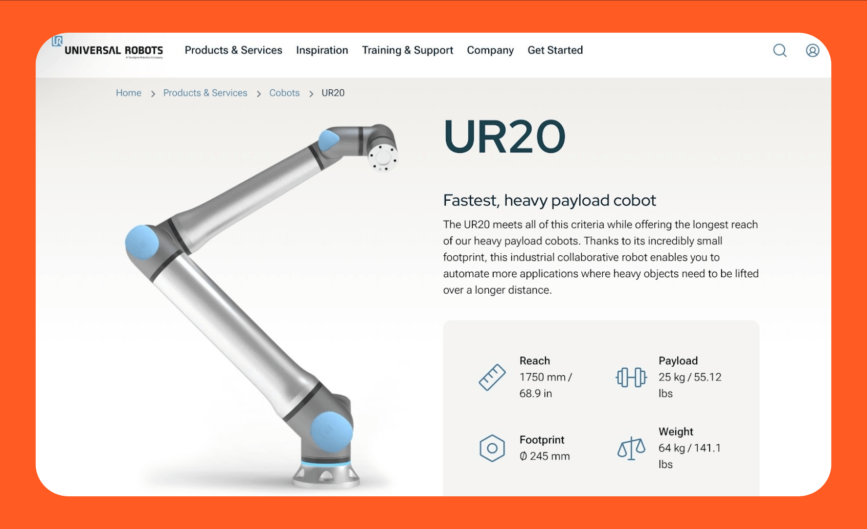 3. Universal Robots UR20: Best for collaborative palletizing